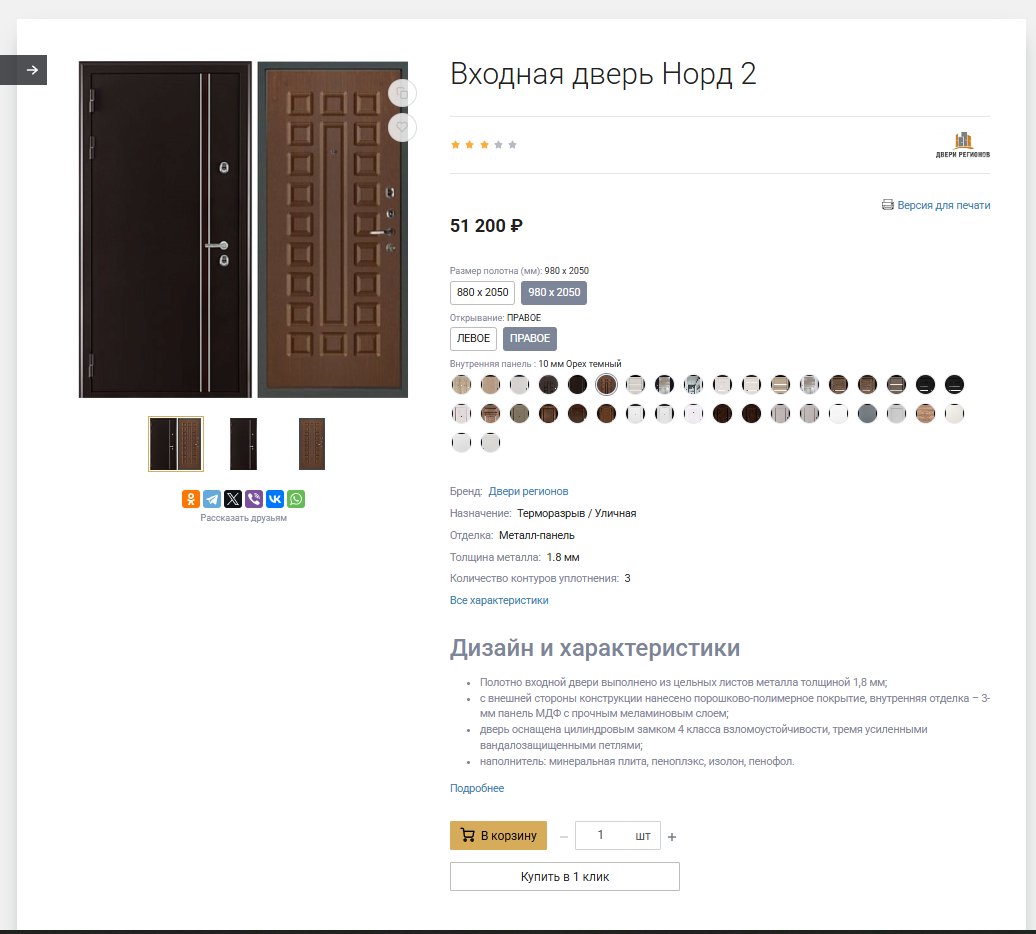 Сайт представляет интернет-магазин с качественно проработанными детальными страницами товаров, на которых выведены основные информация и характеристики товара, приведены технические сведения о продукции.