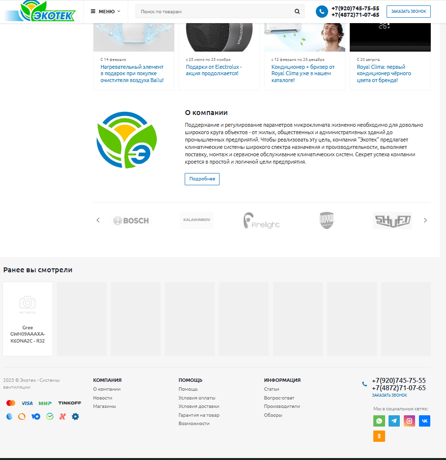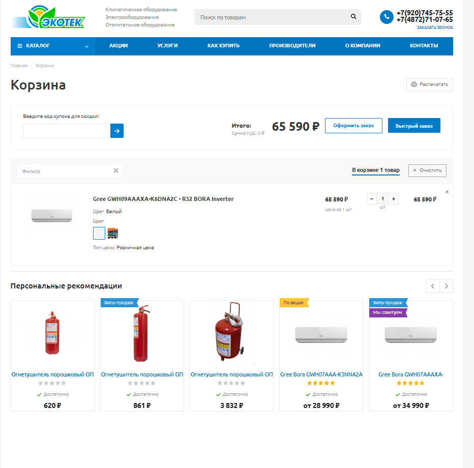 —Создание Интернет магазина на 1с Битрикс для "Климатические системы" ООО "Экотек"