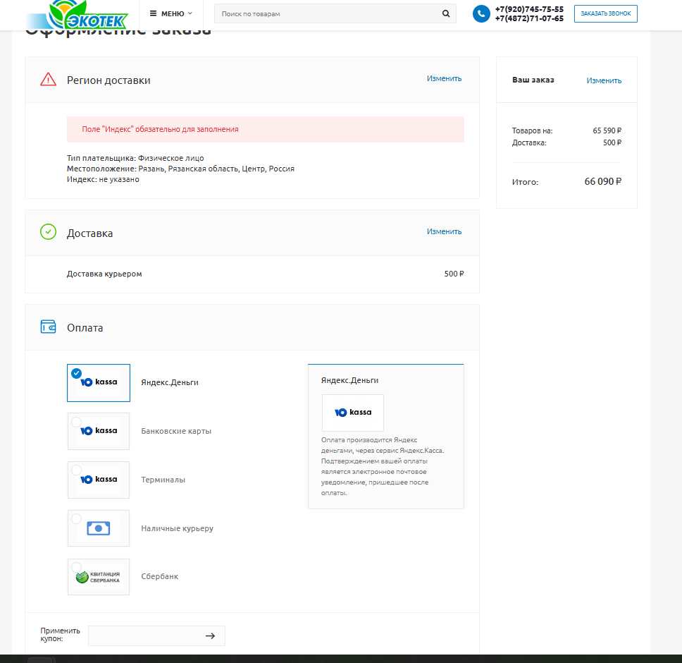 Разработка Интернет-магазина под ключ на CMS 1С Битрикс для компании ООО "Экотек"