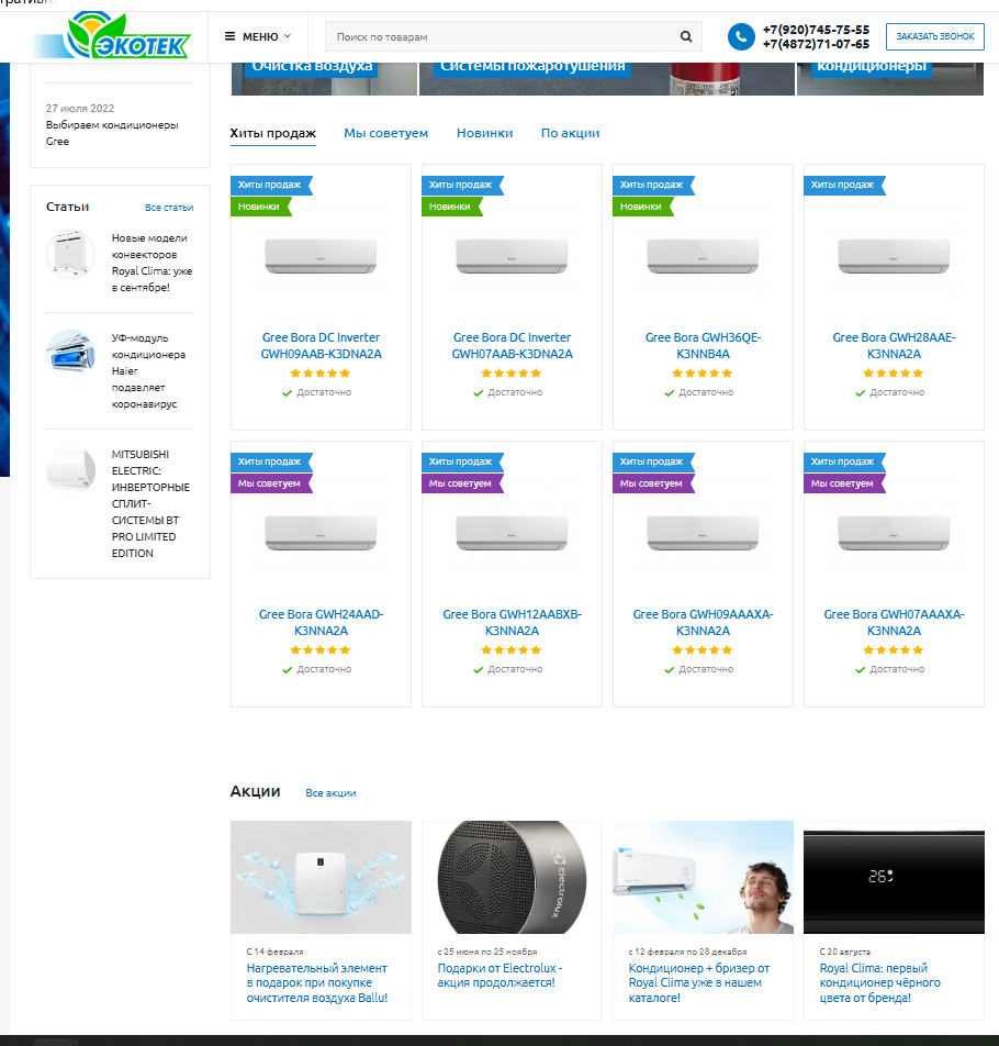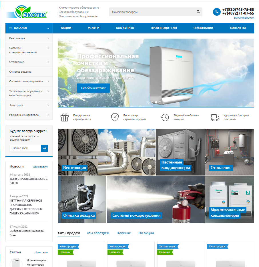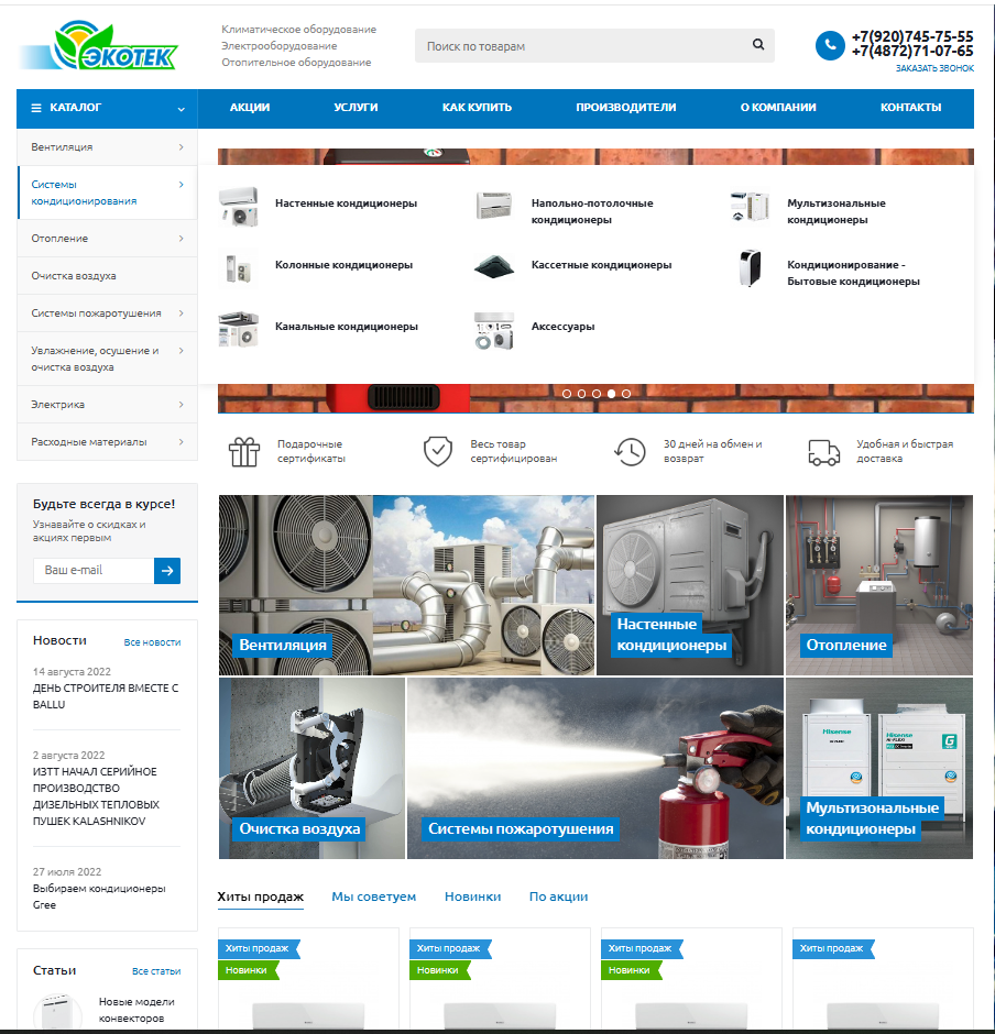 Создание Интернет магазина на 1с Битрикс для "Климатические системы" ООО "Экотек"