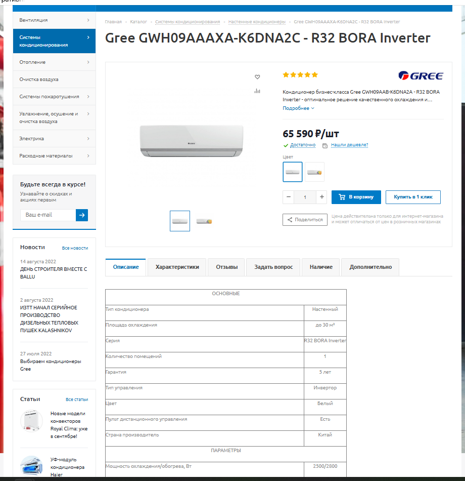 Разработка сайта на 1с Битрикс для Интернет магазина "Климатические системы"