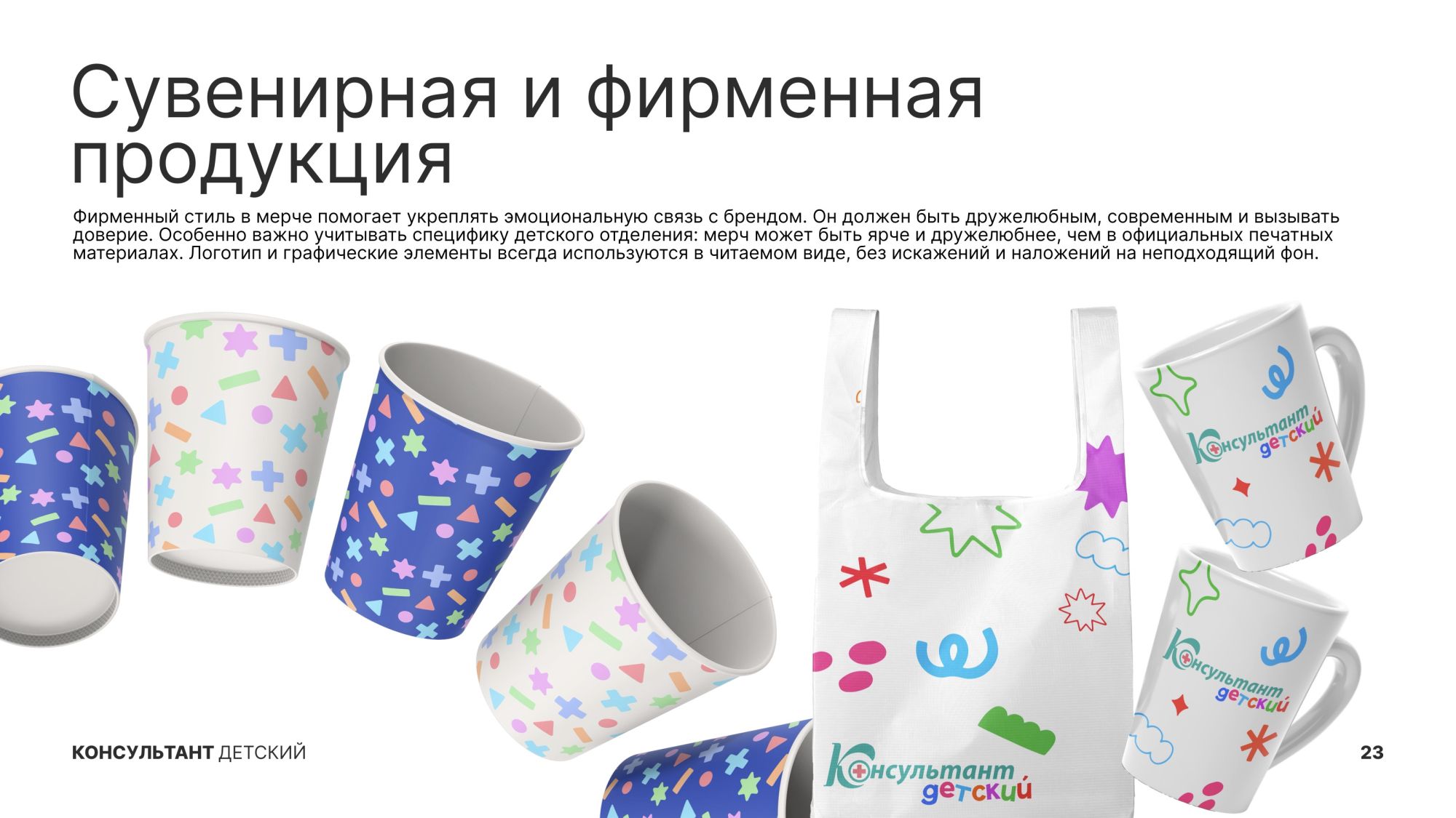 Создали уникальный брендбук для детского отделения клиники «Консультант»: разработали логотип, выбрали приятные детские цвета, создали декоративные элементы и стандарты фотосъемки. Получился стильный и теплый фирменный стиль, улучшающий восприятие клиники пациентами.